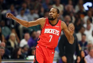 赛前,火箭公布首发阵容:阿门、奥科吉、杜兰特、小贾巴里·史密斯、申京。