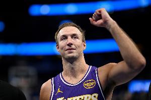 当被问到队友肯纳德的表现最让他印象深刻的地方,詹姆斯说:“我见识过,我已经见识过这种表现很久了,他就是极为镇定自若,他不只是——我知道他的三分命中率领跑全联盟,前不久还因此获得一座奖杯。我们明白他是一位神射手,但他能做的事情远比这多得多,我认为这就让防守人不知所措,因为有时候你就是过于关注他三分命中率50%这一点,有时候你以为他只会投篮,但他的能力远不止于此。”
