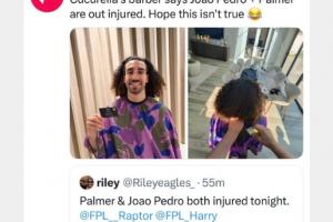 体育资讯04月22日讯 切尔西客战布莱顿,帕尔默和若昂·佩德罗伤缺,这一消息遭库库雷利亚理发师提前泄露。