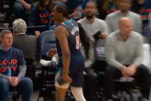 雷霆记者Brandon Rahbar透露,暂停期间杰伦威捂着左腿筋,然后返回了更衣室。