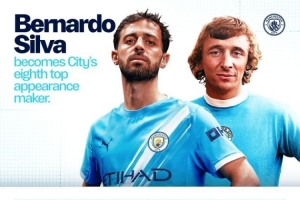 体育资讯4月23日讯 曼城在本轮英超客战伯恩利,队长B席首发也升至队史出场榜第8位。