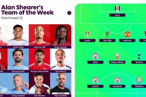体育资讯4月23日讯 阿兰·希勒选出了本轮英超的最佳阵,哈兰德、谢尔基、范戴克、海文和B席入选。
