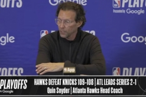 体育资讯4月24日讯 NBA季后赛东部首轮G3,老鹰109-108险胜尼克斯,大比分2-1领先,赛后斯奈德接受了媒体采访,以下为采访全文。