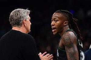 体育资讯4月24日讯 首轮系列赛G3,森林狼113-96大胜掘金,大比分2-1领先。赛后,森林狼主帅芬奇接受媒体采访。