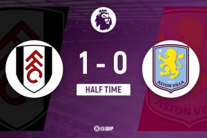 上半场伤停补时1分钟,半场结束,富勒姆暂1-0维拉。