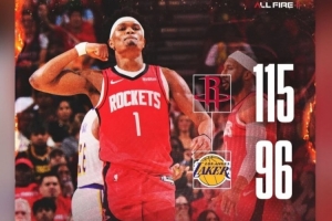 体育资讯4月27日讯 NBA季后赛G4,火箭在主场以115-96击败湖人,将系列赛比分扳至1-3。
