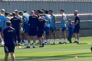 体育资讯4月21日讯 据记者David Ibáñez报道,巴萨队友今日训练前祝贺亚马尔获奖。