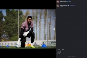 体育资讯4月21日讯 皇马门将库尔图瓦更新社媒,晒出了个人训练照片。